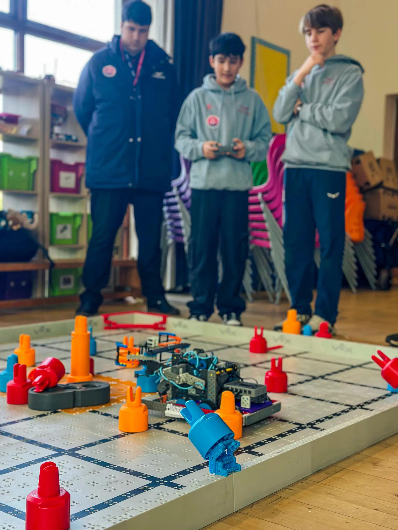 The event was organised and led by Sixth Form students Thomas Robb, Daniel Dew, Aubert Seysses and Jonah Fitchew, whose commitment and hard work before, during and after the day ensured everything ran seamlessly. True to St Chris form, this was no small undertaking. The competition welcomed 24 teams in the VEX IQ category and 32 teams in the V5 category, with around 300 competitors, supporters and spectators coming through our doors across the day.