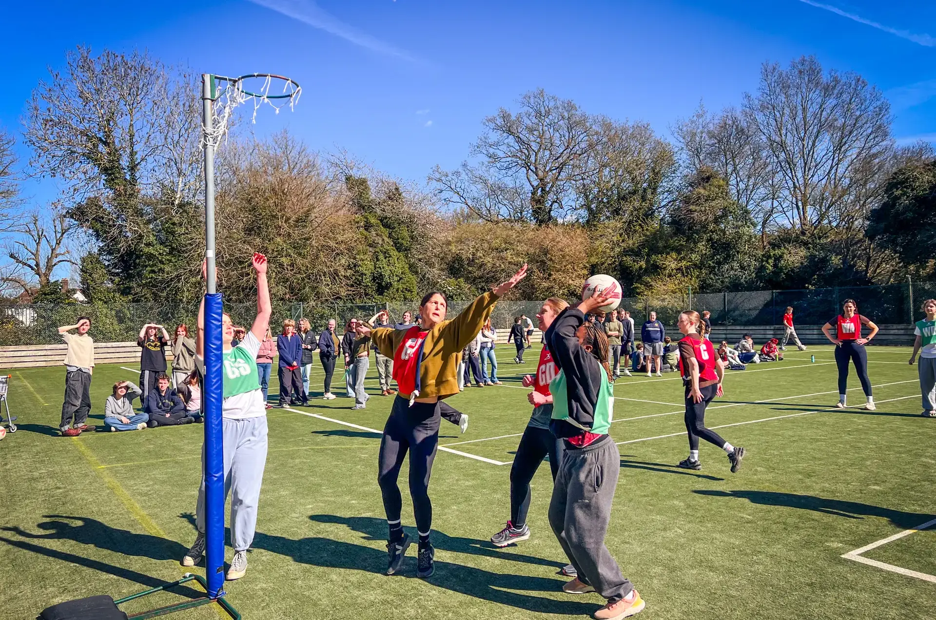 To mark the end of term, we held two staff vs student competitions this week. First up the V Group (Year 11) and Upper Sixth (Year 13) students took on the staff in a netball competition on Thursday, with a convincing 11 - 3 win to the students. Great play by the students: some great cohesive play by both the more established and newer members of the Sixth Form team as well as the tight unit of the V Group team.